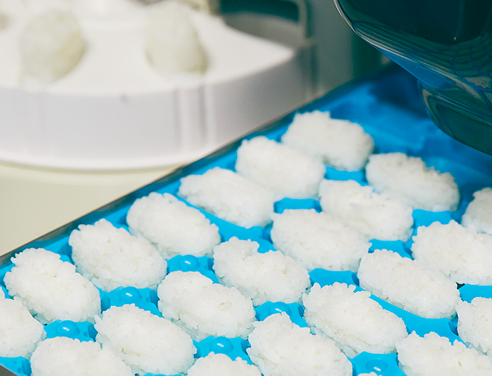 砕米率が低く、しっかりした寿司めしは、にぎり寿司はにぎりやすく、巻き寿司はのばしやすい加工しやすく、おいしい寿司になります。